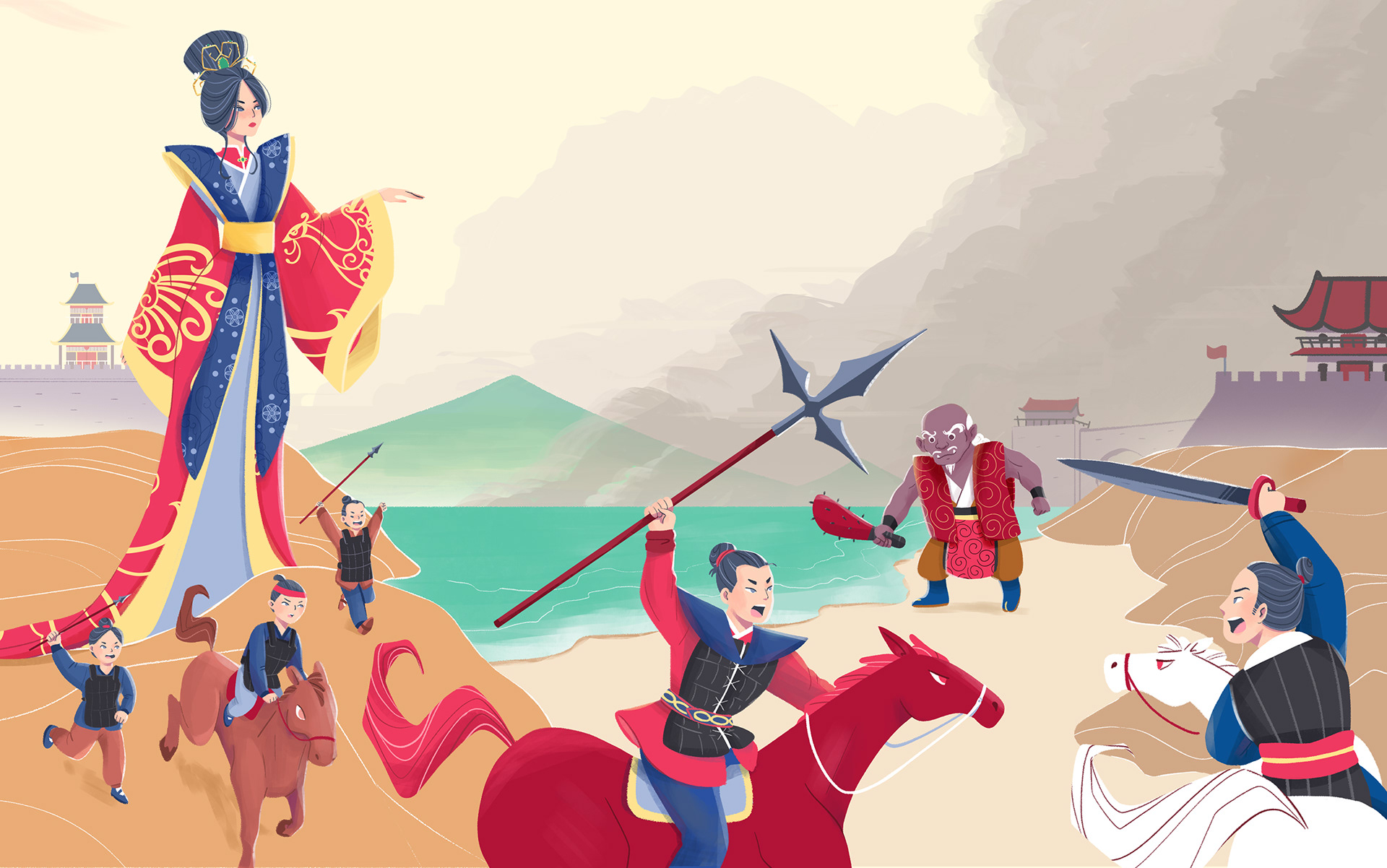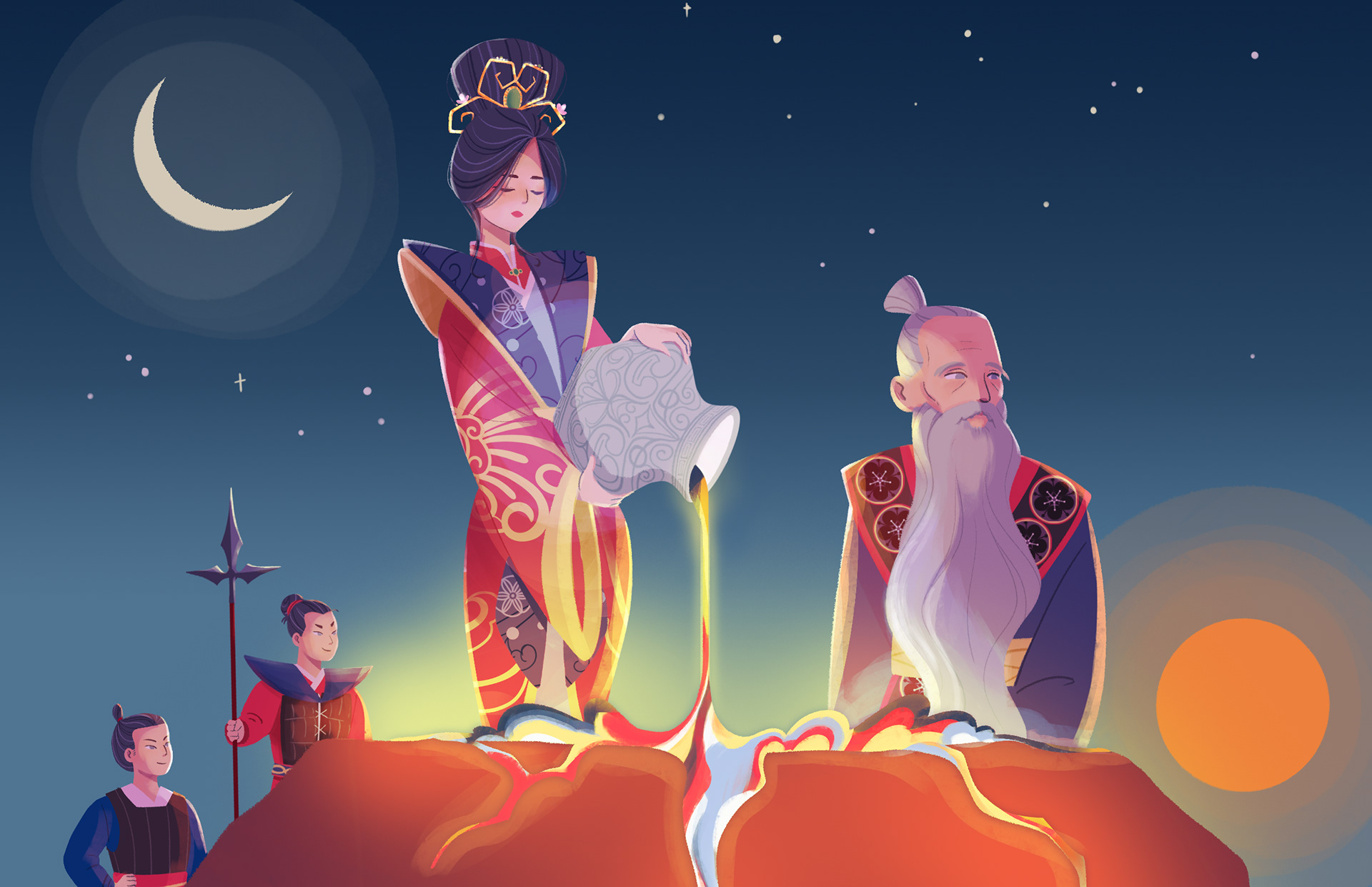 Jokwa and the Stones of Five colours is a tale about the great Empress Jokwa, who, alongside her brave warriors Hako and Eiko, fights against the evil Kokai, who seeks to claim her throne.