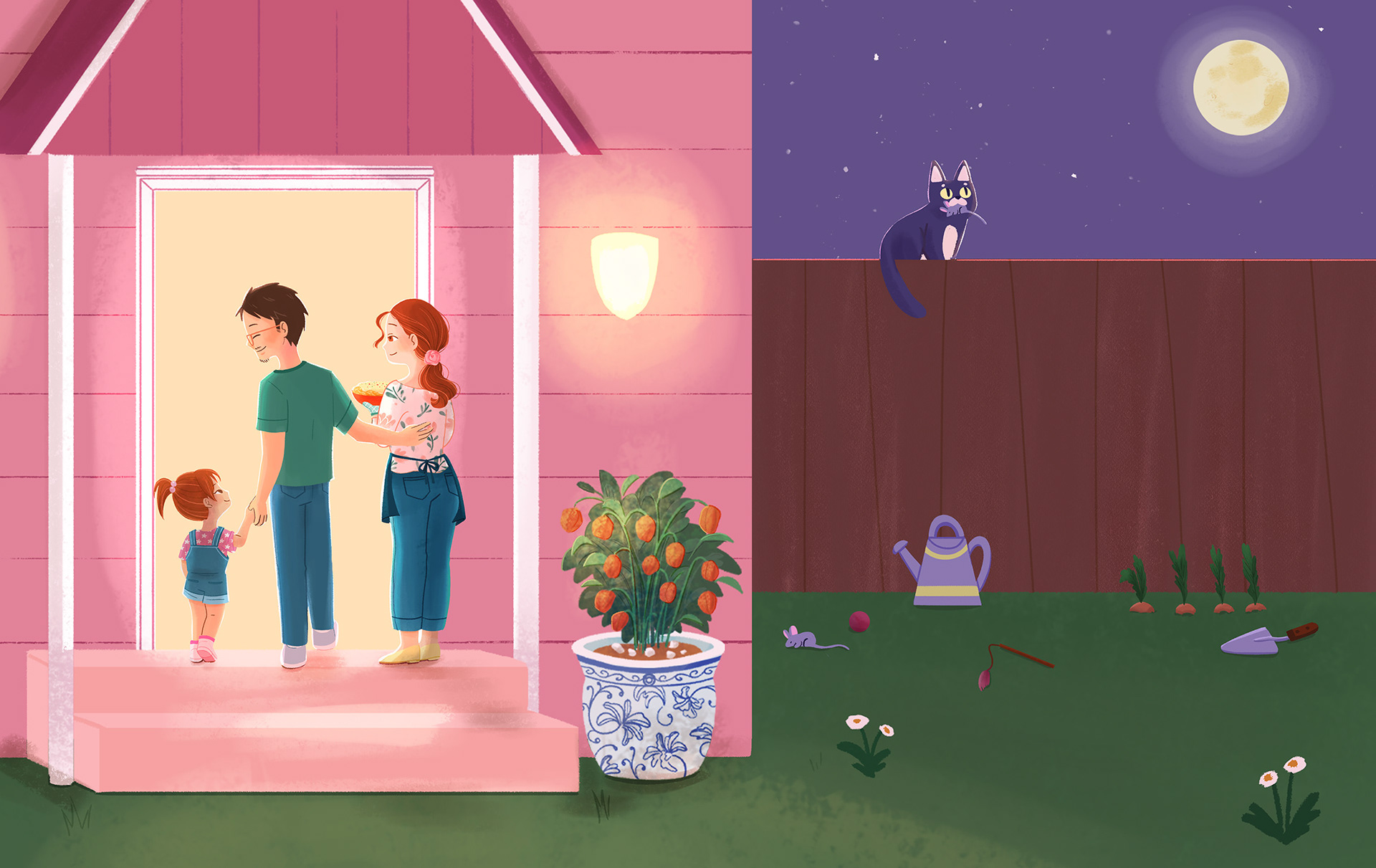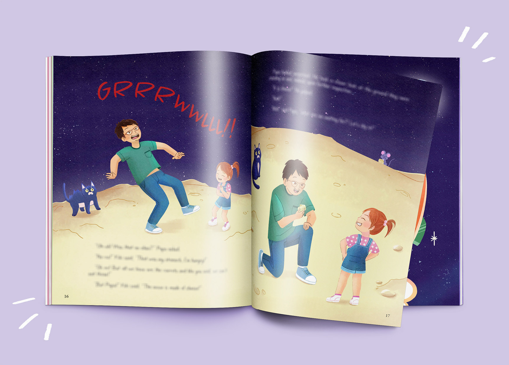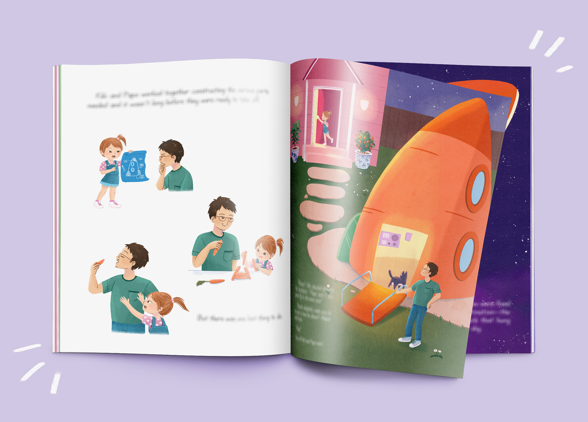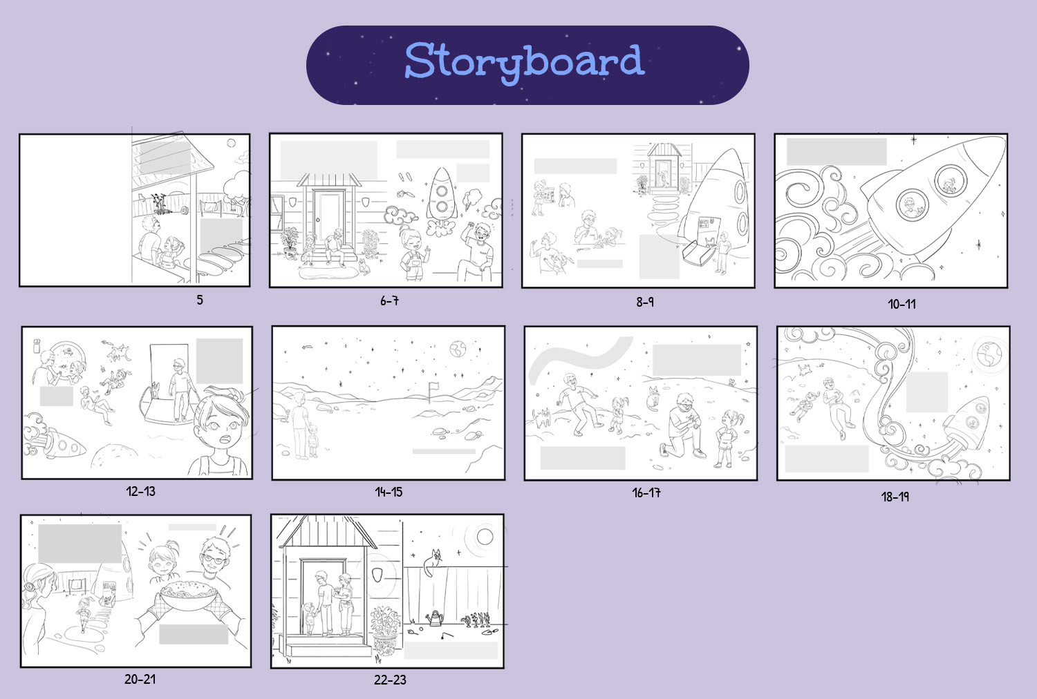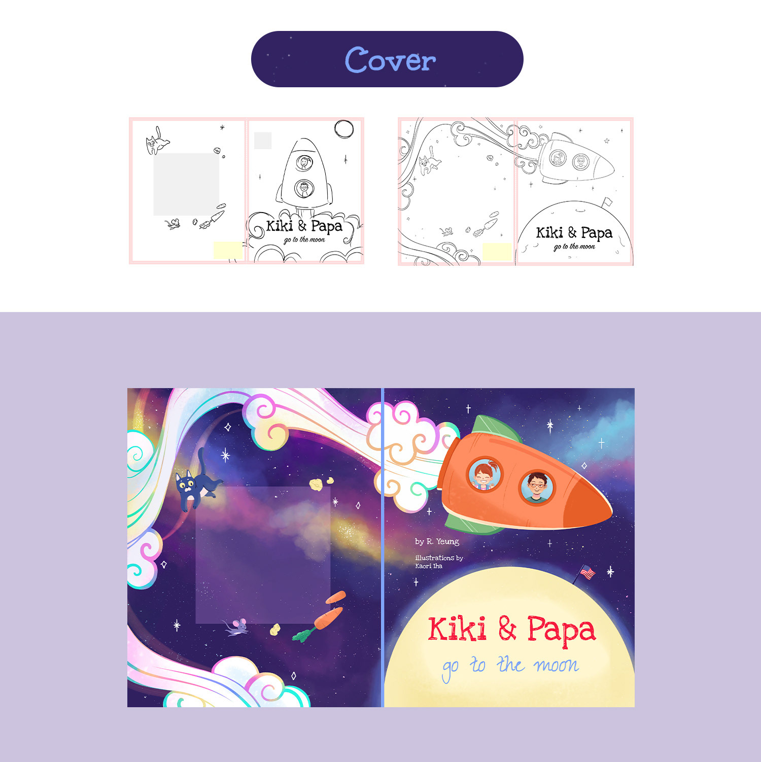 I presented 3 versions for Kiki: A, 3-4 years old, cute hairstyle and delicate clothes; B, 4-5 years old, with simpler, neutral-gendered clothes; C, 6-7 years old, more independent (she makes her own hairstyle), explorer.