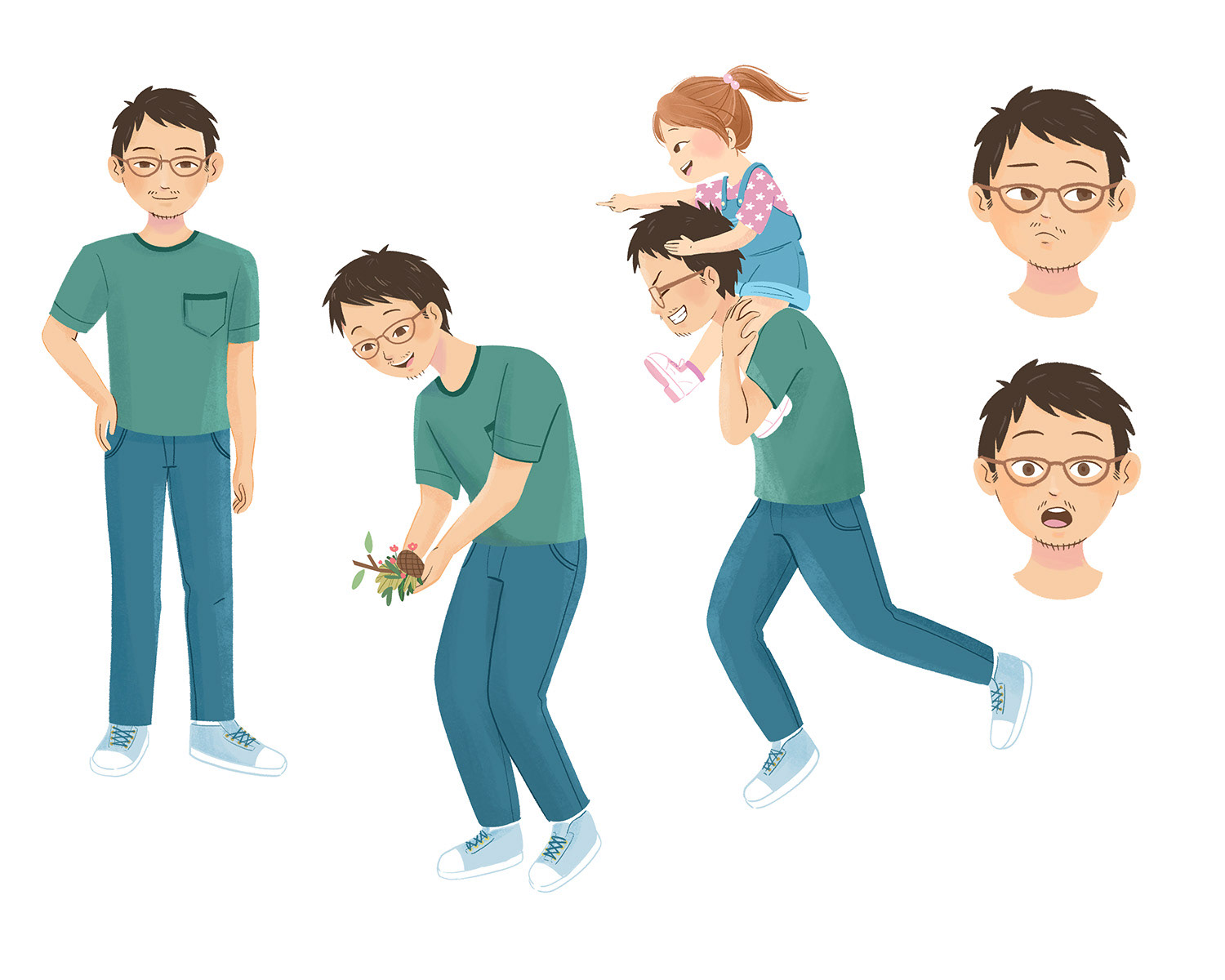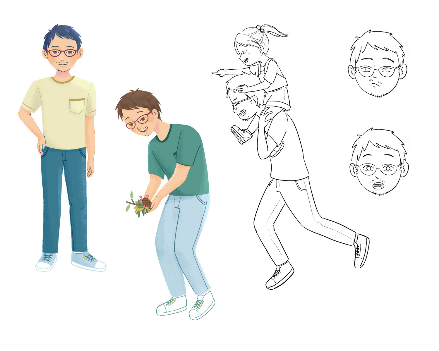 For dad, I made 2 options of clothes and 4 face variations. Option B was chosen for both clothes and face.